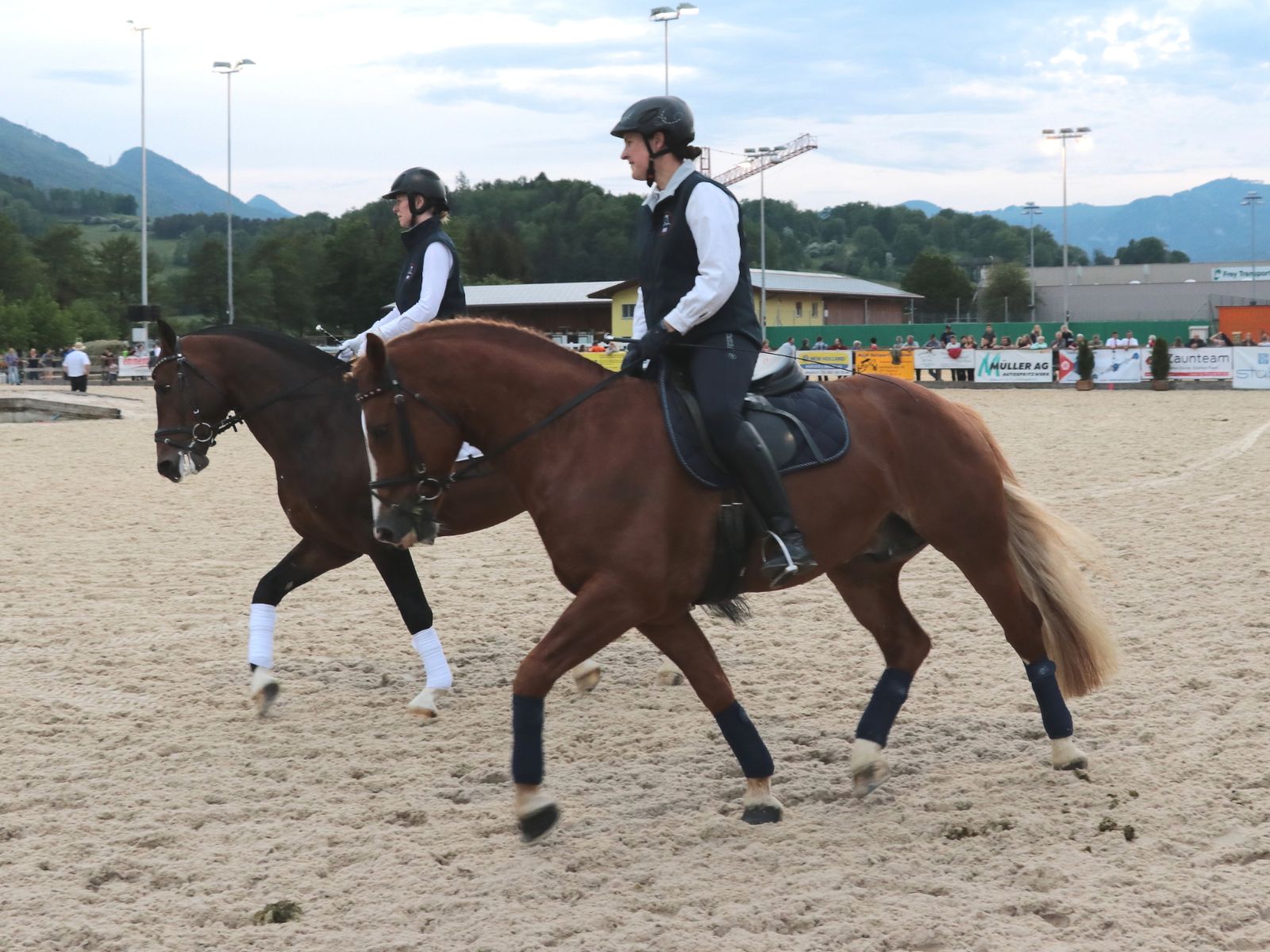Gut beleuchtet und bekleidet haben Jenny und Bianca heute am späten Nachmittag noch eine Runde mit Highway und Krümel gedreht.