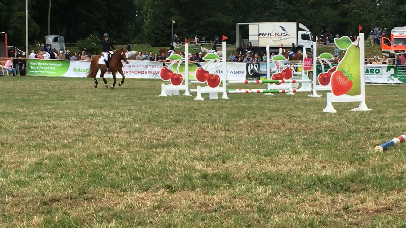 Im Stilspringen fiel leider eine Stange und im Zeitspringen verlor der Pilot kurzfristig die Orientierung. Am Ende haben aber beide sicher das Ziel erreicht und eine wirklich gute Leistung gezeigt. Highway hat sich gut benommen und arbeitet sicher weiter an seiner Konzentration und Emma hat Übersicht beim Abreiten gezeigt und ihr Pferd völlig alleine vorbereitet und den Mut für die anspruchsvoll uterbauten Sprünge gegeben.
